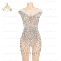ウェディングイブニングドレス用手作りシェニール樹脂ラインストーンアップリケ縫い付けボディパッチ