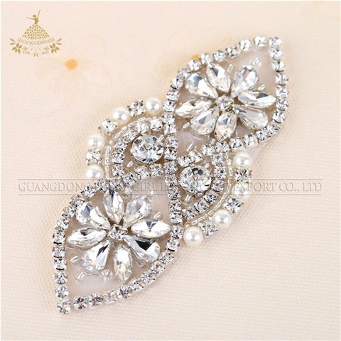 ブライダルサッシ用の美しいファッションデザインラインストーンアップリケと最高品質のクリスタルアップリケ