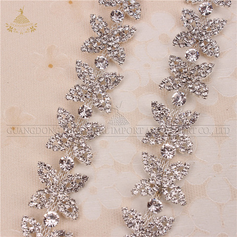 Groothandel Zilveren Bloem shape crystal ketting voor sieraden decoratieve trim fancy accessoire kleding strass cup keten