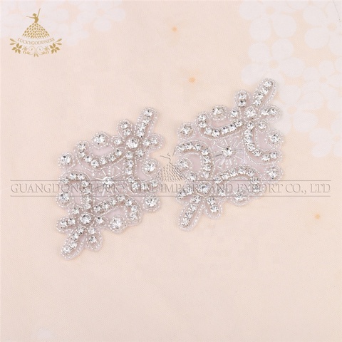 Precio de fábrica de cristal claro rhinestone apliques hechos a mano con cuentas para zapatos de novia